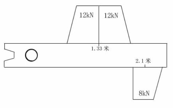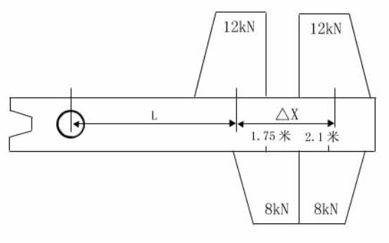 kN × (1.75m - 0.76m) = 12kN × (2.15 - △X) 解得: △X=0.66m,即:L=2.15-0.66=1.49米。 如下图所示: |