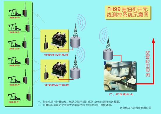 FH99抽油机井无线测控系统是按照我国石油开发行业地域分块、管理分层的特点,针对油田自然与社会环境恶劣的实际情况而开发的,具有“先进、可靠、方便、实用”的特点。系统共分三个层次:厂矿信息中心、计量站及中继站、抽油机井监控器。